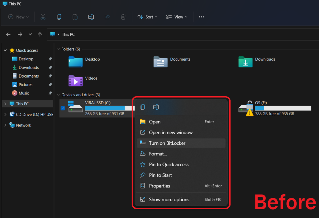 This is how the Windows 11 context menu looks like before applying the fix.