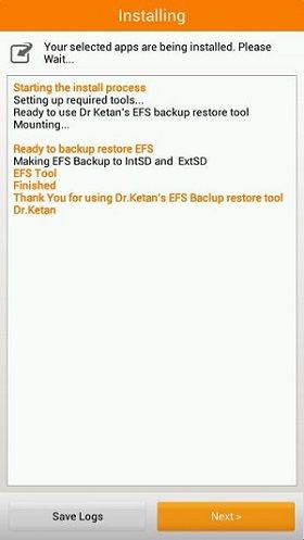 - Finally! You’ve successfully backed up and restored EFS / IMEI using Aroma Installer.