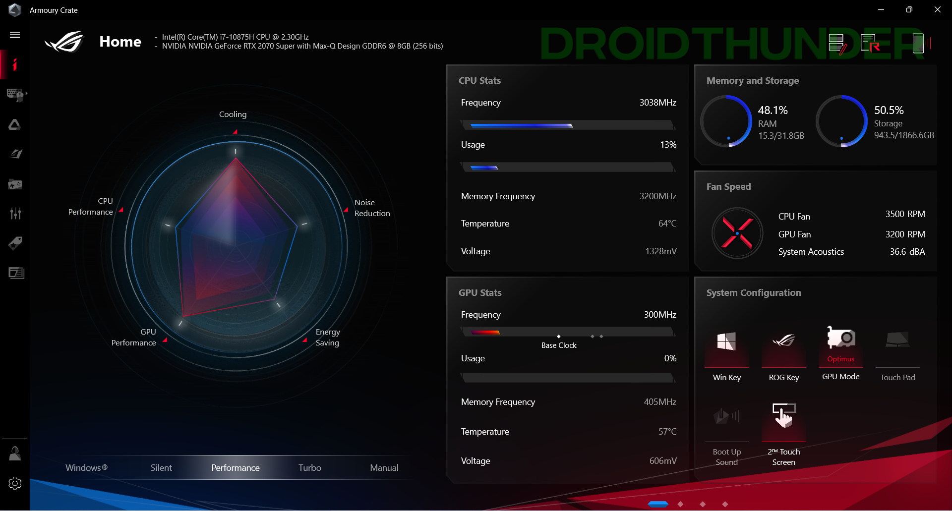 Armoury crate for ROG and TUF gaming laptops on Windows 11.